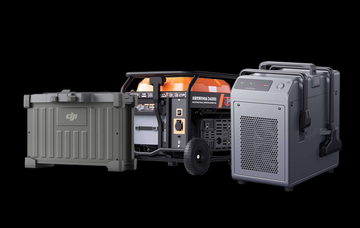 Eficiente en combustible, carga rápida, inicio rápido. La Estación de Carga Inversora Multifuncional D6000i y el Cargador Inteligente C8000 soportan tanto la carga de combustible como de energía eléctrica. Combinados con la Batería de vuelo inteligente DB800, permiten una carga ultra-rápida.